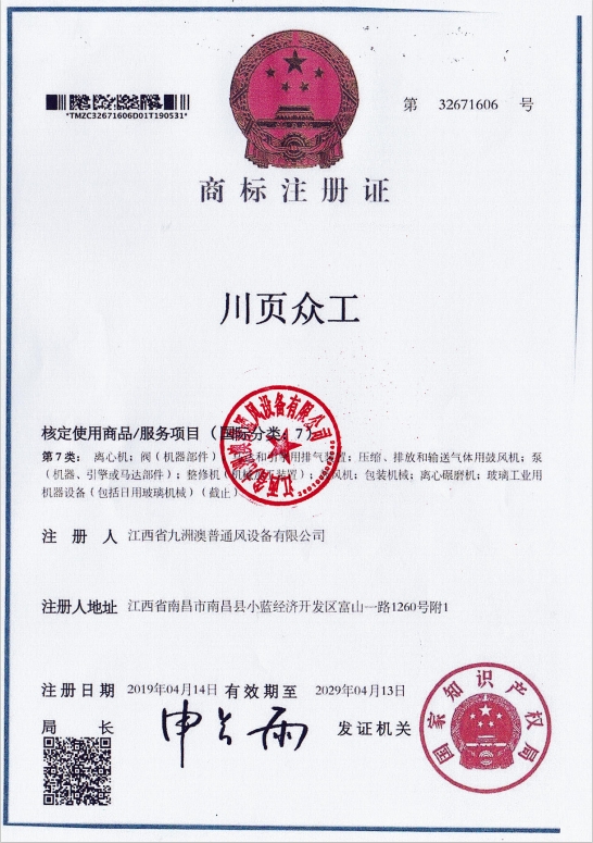 商標(biāo)注冊(cè)證(川頁眾工